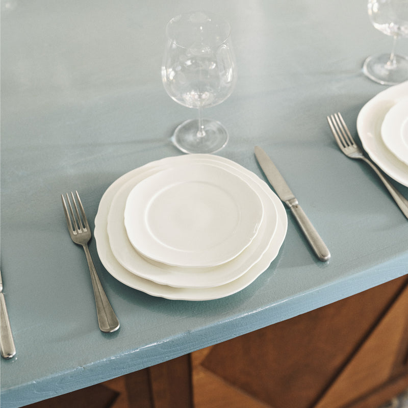 With Silhouette, Sergio returns to his roots, both personally and professionally. He drew inspiration from the lively atmosphere of traditional brasseries, where people connect over good food. The soft-toned porcelain is a nod to his early days at Oud Sluis, where everything began. By stripping away colour, he has created a neutral, timeless foundation that allows users to bring their creativity to the table.