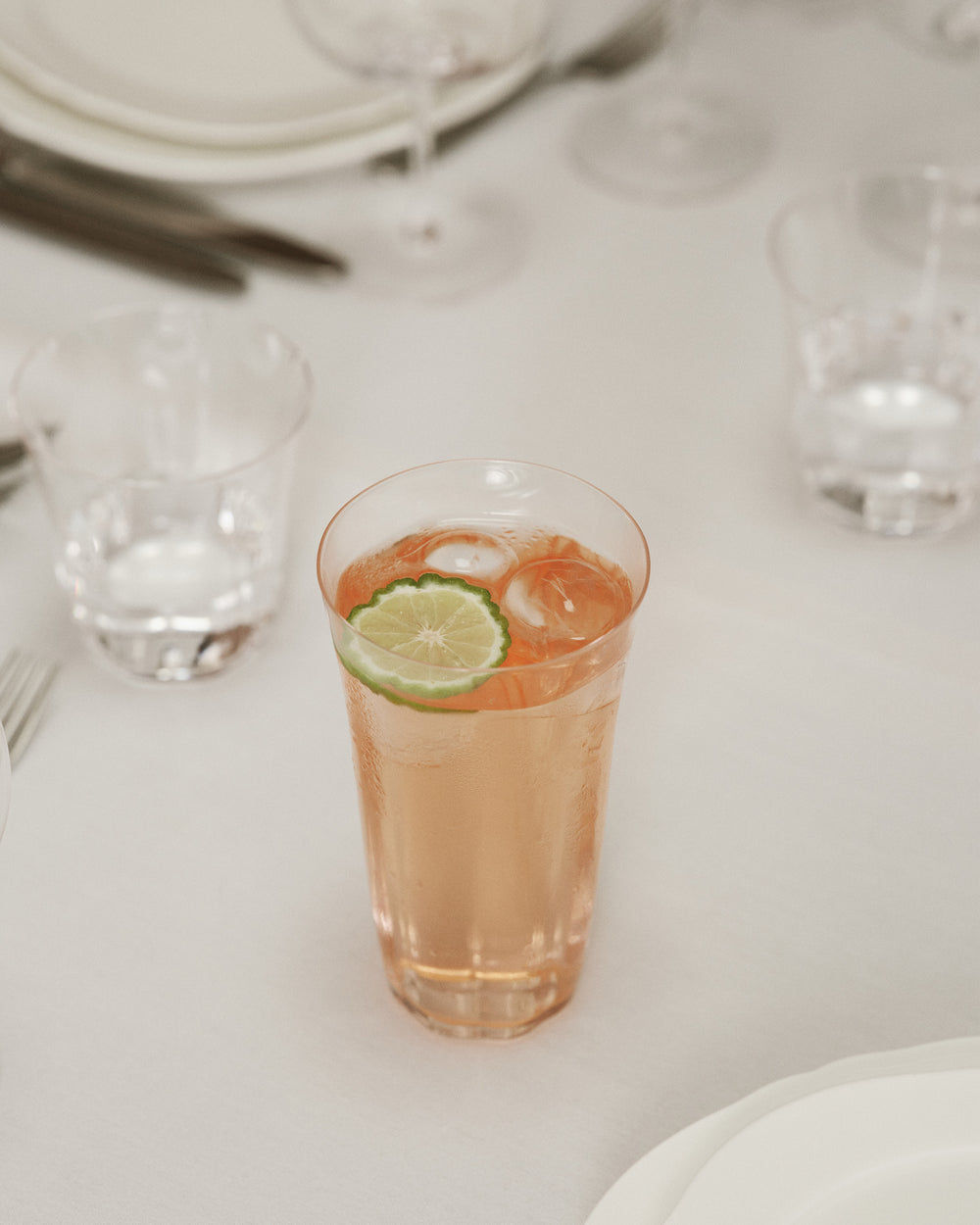 The porcelain is complemented by a line of glassware that is also inspired by nature. The glasses are a subtle reference to the calyx of a flower, with shorter stems for the wine glasses, adding a contemporary, accessible feel while ensuring maximum ease of use. The vertical lines of the highball and the espresso glass, meanwhile, are reminiscent of the ripples in water, conferring a sense of subtle elegance.