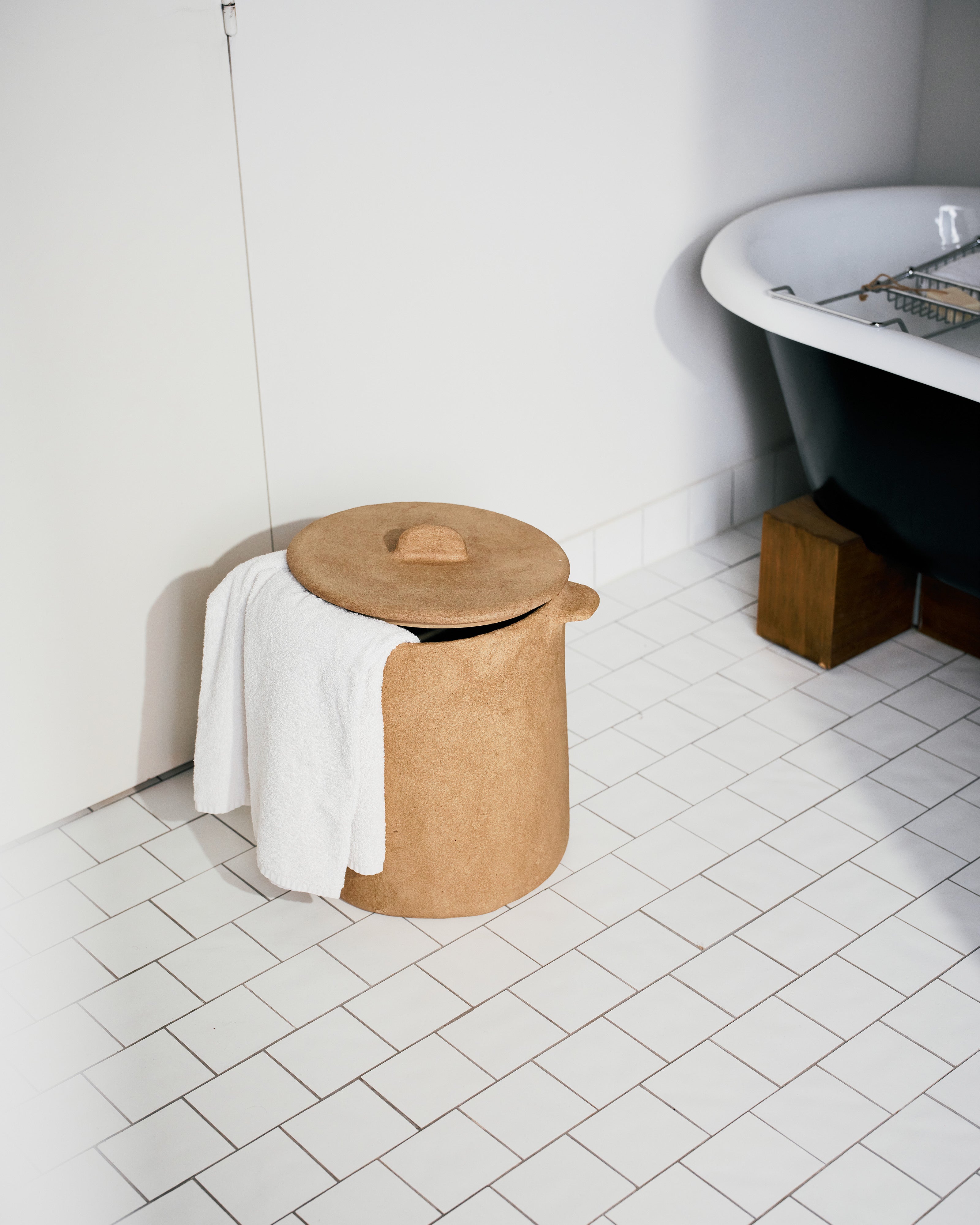 Pot with lid brown paper mache Earth